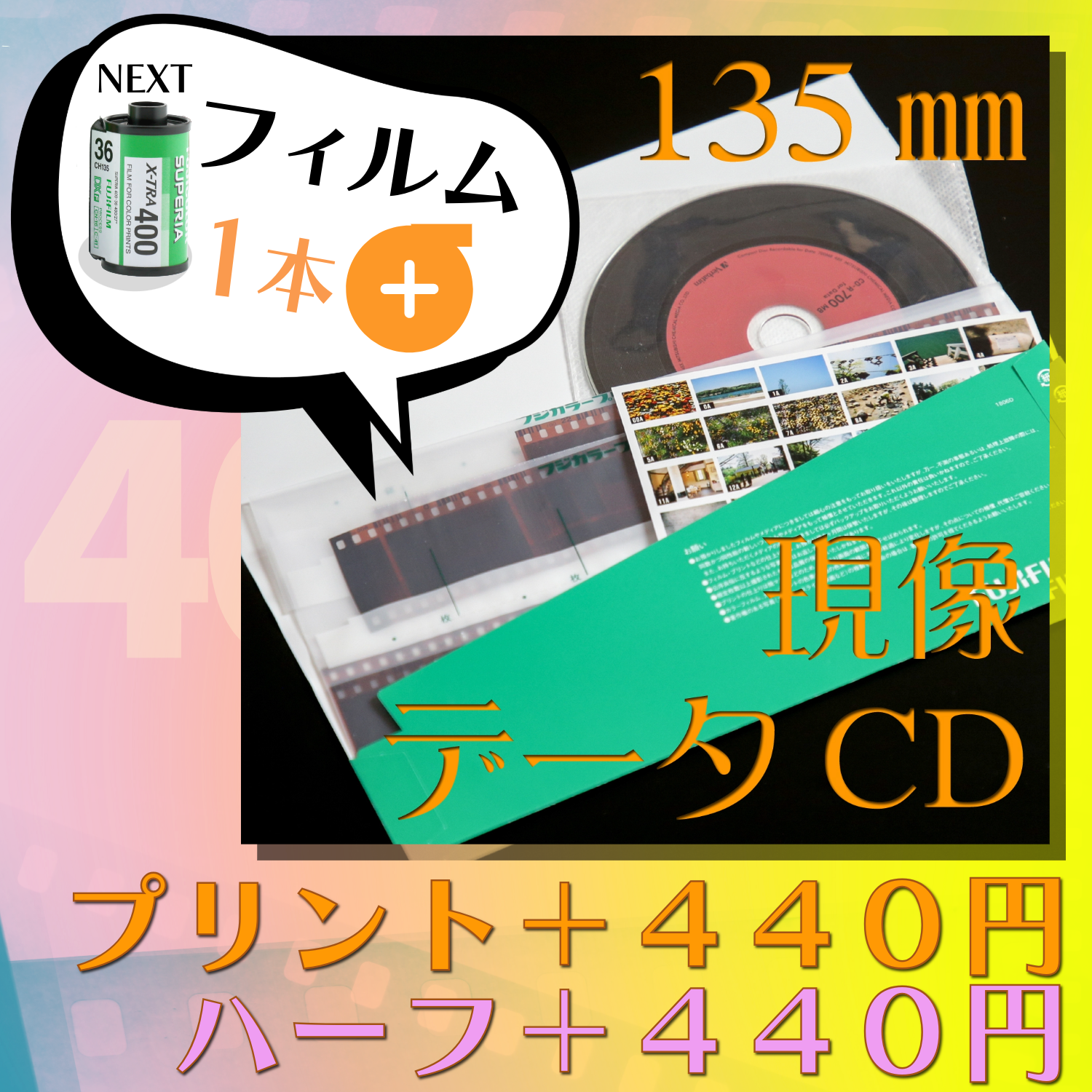 送料すえおき!プラス・フィルム400[現像+データ][+プリント]:カラーネガ135mmフィルム【フル/ハーフ】カラーネガフィルム現像 現像コースにフィルム1本ついてくる FUJICOLOR 400