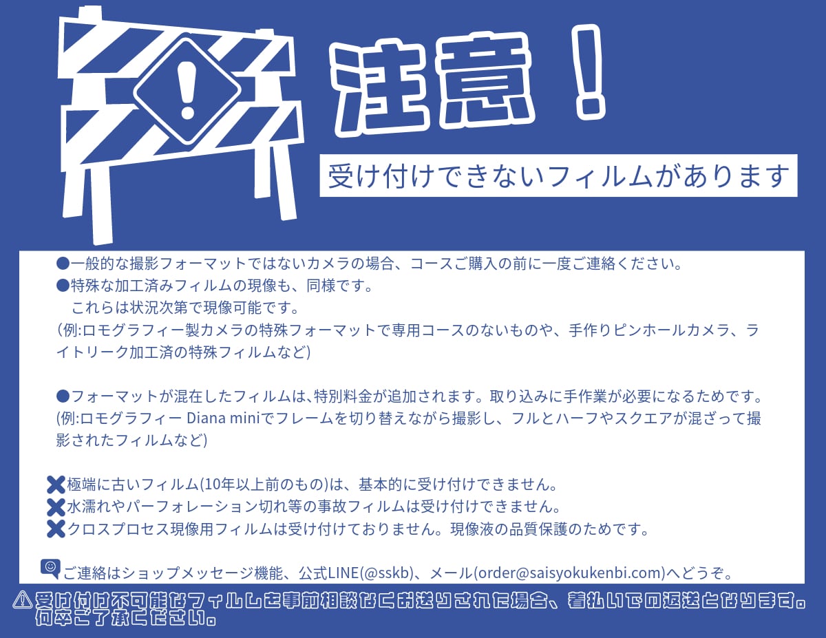 ・フィルムの種類変更はお受けできません。